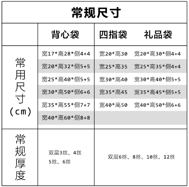 產品介紹:超市購物袋,是常見塑料袋的一種,因其形狀酷似背心,因而得名。背心袋制作簡單,用途廣泛,在日常生活中已成為人們不可缺少的必需品,為人們提供了極大的方便。