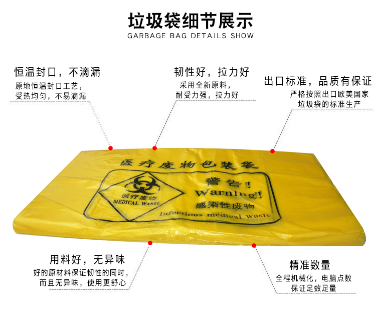 醫療垃圾袋是用于收集醫療廢物的專用袋子,主要用于醫療機構或個人家庭中收集和處理產生的醫療廢物。醫療廢物是指在醫療保健過程中產生的具有傳染性、有毒性或其他危害性的廢棄物,需要進行專門處理和處置,以防止對環境和人類健康造成危害。使用醫療垃圾袋可以有效地對醫療廢物進行分類、包裝和運輸,確保安全處理和處置。在使用過程中,請按照相關規定正確分類、封裝和處理醫療廢物,確保環境衛生和公共安全。